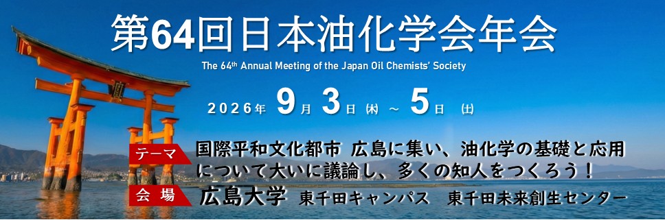 実行委員長:上野 聡 うえの さとる (広島大学) 事 務 局:金子 行裕 かねこ ゆきひろ(日本油化学会)